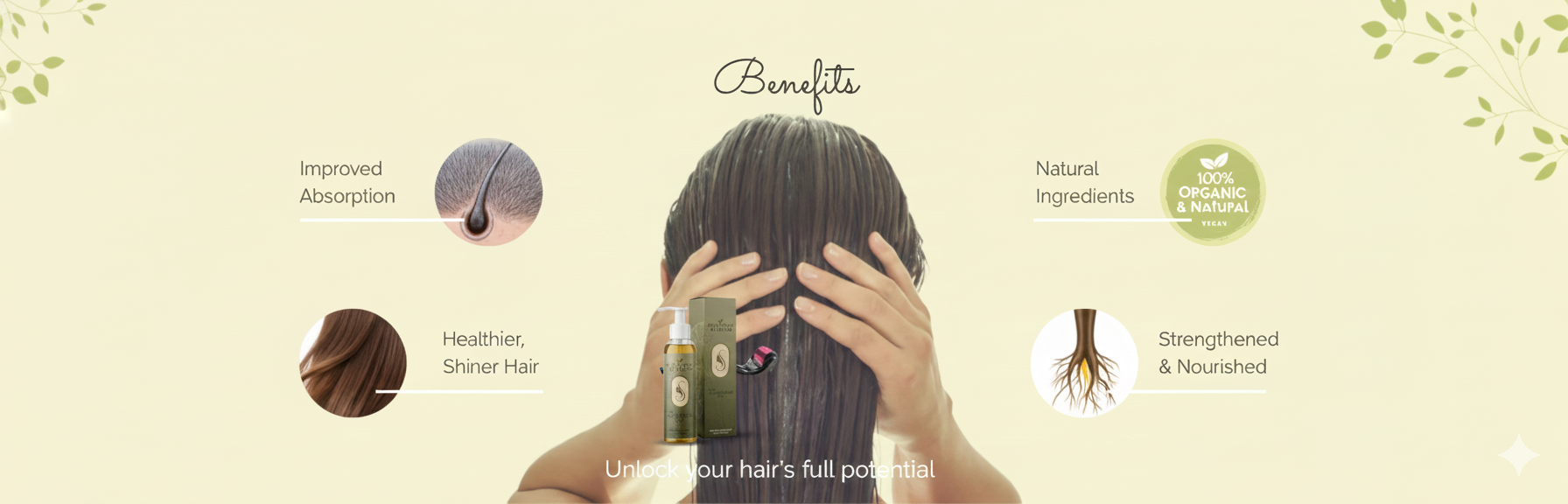 Every drop of our formulation is a curated blend of premium botanical extracts, cold-pressed oils, and ethically sourced ingredients, developed through meticulous research and refinement. We craft our products with the elegance of tradition and the precision of modern science — ensuring a balance of nourishment, strength, and natural radiance.